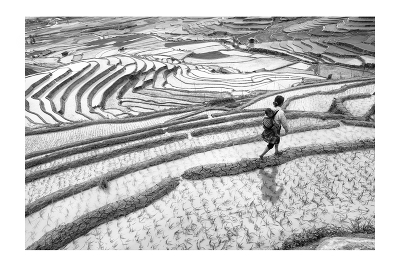 Высота таких проходов- преград между водой около 1-2 метра, ширина около 20 см. Как они умудряются так безопастно ходить....Каждый этот маленький колосок риса посажен руками.