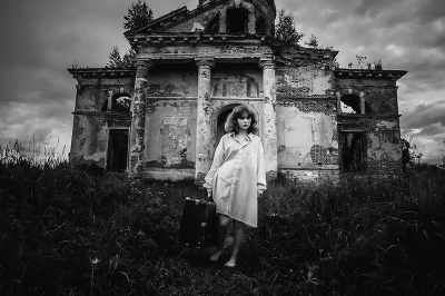 Девушки с чумаданом , эт канешна классика абсурдизма , но руины зачетные , все исправят. Да , и еще нейлоновая мужская сорочка из ЦУМа, сразу понятно , брошенка.