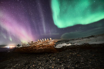Без названия Про сияние и драккар, выброшенный на берег штормом. Вернувшись на это место через пару часов нас ждало большое разочарование. Начался прилив и вся эта махина была почти полностью под водой. |