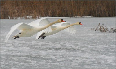, В фокусе только один лебедь. И это при диафрагме f/8. Близко ко мне летели, времени прикрыть дырку сильнее не было.