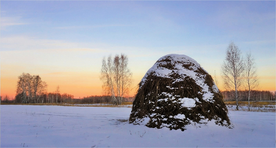 Почему-то стох сена оставшийся на зиму вызывает уныние. Красивый кадр, особенно свет!