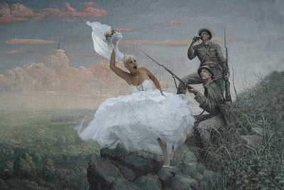 Найн! Категорически не те солдатики. Надо было "флаг над Иводзимой" использовать. Невеста в композицию идеально вписывается. И благодаря узнаваемости отклик был бы мощнее.