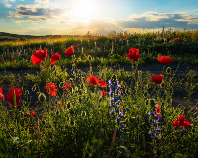Алые маки в степи.