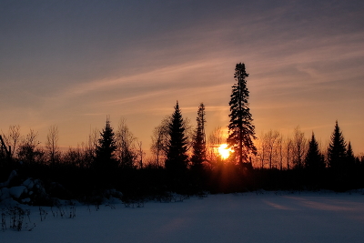 На закате.