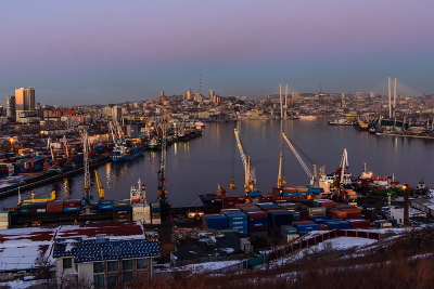 Вид на Золотой Рог с Крестовой сопки. Январь 2023