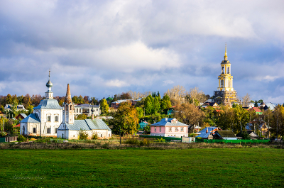 2013 год. Церковь Богоявления Господня; церковь Рождества Иоанна Предтечи; Преподобенская колокольня Ризоположенского монастыря.