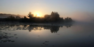 Утренний туман на озере Сосновое.