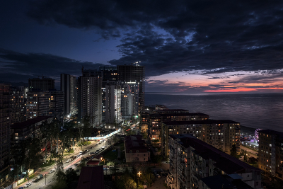 Солнце погрузилось в Черное море, город зажег огни