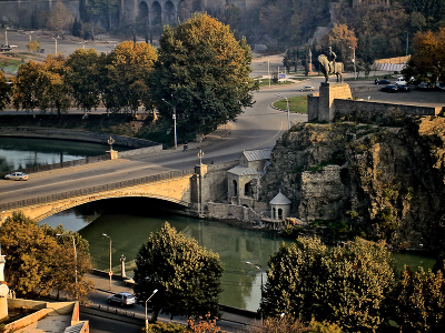 Тбилиси, район Метехи Метехский мост и памятник Вахтангу Горгасали, — царю Иберии (V век), основателю Тбилиси, основоположнику грузинской государственности. Грузинская Православная Церковь причислила его к лику святых. |