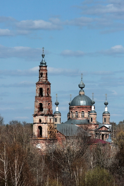 Церковь Воскресения Словущего в Воскресенском в Поречье. Крупный пятикупольный храм с трапезной и высокой колокольней. В летней части (1837) главный Воскресенский престол, в зимней (1843) - приделы Иверский и Леонтия Ростовского. Закрыт около кон. 1930-х, ныне активно ремонтируется. Приписан к Богоявленскому монастырю Углича.. |