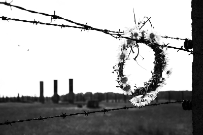 Давайте будем посмотреть:  - вот то, что Вы предлагаете. Что получается? А ничего хорошего и не получается. Увеличивается акцент на венок и создаётся ощущение бесконечности колючей проволоки, соответственно и безысходности. Авторский же вариант кадра, своей правой частью, своим "якорем", как бы показывает конечность протяженности колючей проволоки, а в совокупности с венком даёт надежду на то, что Аушвиц не повторится.