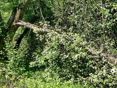 Огромная старая черемуха. Для нее потеря одной ветви, даже толстой, мало заметна.