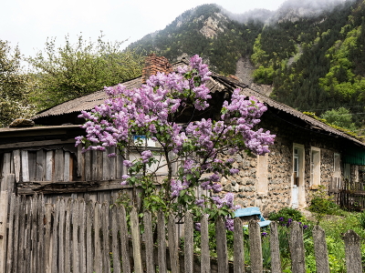 Майская сирень не удивляет, но в сочетании с этим домиком на фоне гор, картинка с этим кустом меня тронула.