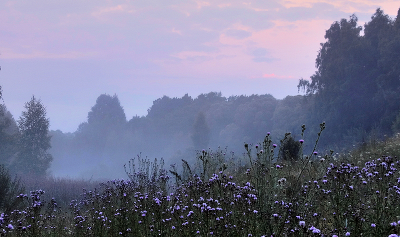 Туманное сиреневое утро