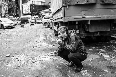 Николай Бурдин, Так давайте разберёмся. На данном кадре представлен отнюдь не бомжик и не маргинальная личность. Взглянем на шузы - они блестят ( в некоторых местах) Куртка вполне себе чистая и целая, брюки тоже не " с чужого плеча". У меня где-то есть кадр, специально позирующего, подобного человека - я бы назвал его начинающим алкашом, но это если притягивать за уши. По этому как пример - не катит.? А как фотография - вполне. |