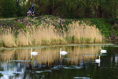 Красиво! Шума лебеди не боятся? Обычно они пугливые.Конечно,если не постоянно встречаются с людьми,которые их подкармливают...