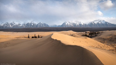 "Забайкальские дюны" Чарские пески -это не одиночный бархан, а полноценная пустыня. Она протянулась в длину на 9 километров и занимает площадь около 50 квадратных километров. Некоторые участки пустыни закреплены травянистой растительностью, тогда как другие представляют собой сыпучие движущиеся пески. Песчаные массы формируют гряды, барханы и цепи барханов, перемежаемые котловинами. Относительные высоты некоторых барханных гряд достигает 25 метров |