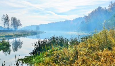 "Туман сиреневой накидкой укрыл речные берега ..."