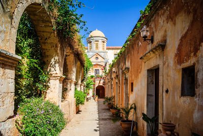 Крит. Монастырь Агия Триада Тсагоролон (Монастырь Святой Троицы). 1611 г. Монастырь Агиа Триада (Μονή Αγίας Τριάδος, Monastery of Agia Triada, Monastery of Agia Triada Tzagarolon) — один из известнейших и богатейших не только на острове Крит, но и, пожалуй, во всей Греции. Строительство монастыря началось в 1611 году выходцами из состоятельной критско-венецианской семьи — братьями Тсагаролон (Tzagarolon), оказывавшей в то время сильное влияние в этом регионе Крита. |