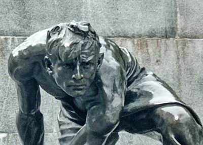 Может и цепи... кто его знает - скульптура создана в 1927, может, за это время он сменил булыжник на цепи...