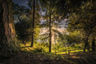 Густая растительность батумского ботанического сада преобразила закатный свет зелеными рефлексами