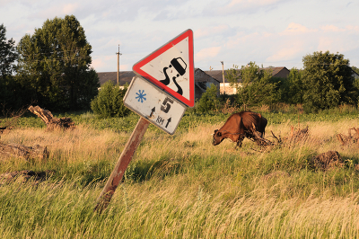 Забавно, корова как на гололеде вкупе со знаком. Короче нравится.