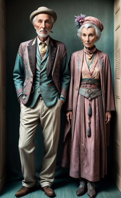 Старик Хоттабыч с подругой. Подруга, по выражению лица, словно впервые позирует фотографу.