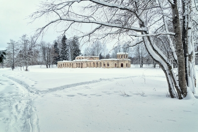 Зимняя Гатчина. Павильон "Птичник" в Гатчинском парке.