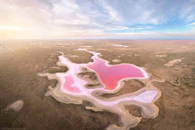 "Розовые озера Калмыкии" Розовые озера - одно из чудес природы Калмыкии. Удивительный цвет воды появляется благодаря живущим в соленых водах водорослям Dunaliella salina в сочетании со специфическими бактериями. Так же здесь обитают микроскопические рачки Artemia salina, которые питаются этими самыми водорослями и тоже вносят свой вклад в окраску водоемов. После зимы цвет озер не яркий. В течении лета розовый оттенок становится более насыщенным. Однако, соленые озера Калмыкии не отличаются большой глубиной и запасами воды, поэтому к середине лета они просто высыхают |