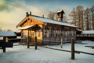 Комплекс Покровской церкви в усадьбе Богословка под Петербургом. Февраль 2013.
