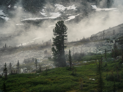 Одно ненастное утро в горной долине Черного озера. Природный парк Ергаки.