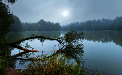 Солнце - словно лунный диск висит в тумане...
