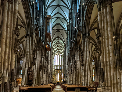Кёльнский собор.. Кельнский домский собор 1248 год. 157-метровые башни собора являются символом города Кельна. Могучие стрельчатые арочные окна в середине западного фасада. Внутреннее пространство как бы перетекает во внешнее. Восхищает готическая архитектура. Чудо, что сохранился в период войны. Собор называют "стеклянным храмом". Более 10000 кв.м. стекла в разные эпохи были здесь превращены в бесценные произведения живописи. Хрустальное море витражей в верхнем клиросе было создано в 1304 - 1321 годах. Знаменитые библейские витражи 1260 года. Баварские витражи - чудесное творение новой готики. Романтические витражи созданы средневековыми мастерами. Картины, скульптуры, реликвии наполняют внутреннее убранство собора Кёльнский собор (Германия) официально называется — Собор Святых Петра и Марии. Это самая большая готическая церковь в Северной Европе. Римско-католический собор в Кёльне, наряду с Шартрским и Нотр — Дам во Франции, считается величайшим выражением немецкой готической архитектуры. Кёльнский собор (нем. Kölner Dom) — римско-католический готический собор в городе Кёльне. Занимает третье место в списке самых высоких церквей мира и внесён в список объектов Всемирного культурного наследия. |