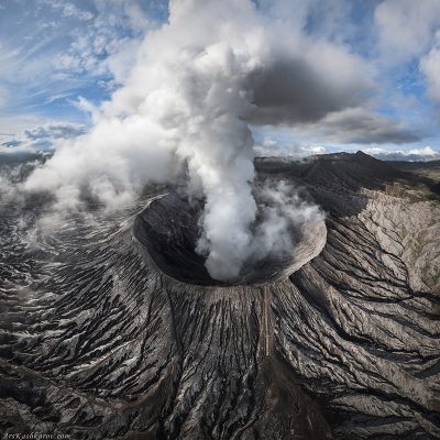 "Бромо" Бромо является одним из самых активных вулканов острова Ява. Поднявшись на кромку кратера можно заглянуть прямо в жерло вулкана. В глубине всё клокочет и гудит, а в воздух вырывается столб пара и вулканических газов. Примерно каждые 10 лет Бромо извергается по-настоящему, засыпая все окрестности пеплом |