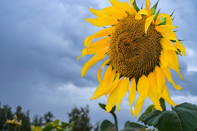 Дождливый сентябрьский день и только ярко желтеют не убранные подсолнухи на полях...
