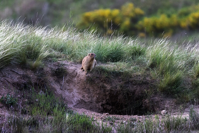 Мне кажется,что это обвал грунта на пролегающей ранее тропинке. Уж,какой-то несчастный вид у животного.Лучше пусть будет нора.Вы же близко видели! Эмоционально смотрится снимок.