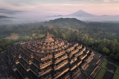 "Боробудур" Боробудур - один из древнейших хорошо сохранившихся буддийских храмов в мире, находится в центральной части острова Ява в Индонезии. По оценкам историков Боробудур был построен в VIII - IX веках. Однако впоследствии люди покинули эти места, вероятно после сильнейшего извержения вулкана Мерапи в 1006 году. Храм оказался погребен под толстым слоем пепла, а позднее поглощен джунглями. Лишь в 1814 году монумент был обнаружен и расчищен, частично восстановлен лишь в начале XX века. В 1973-1984 под эгидой ЮНЕСКО была проведена капитальная реставрация: разборка сооружения, укрепление холма и полная реставрация храма |