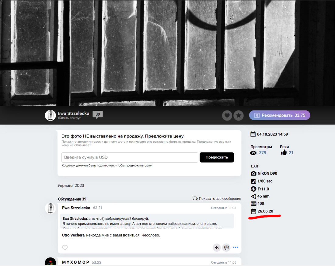 Alexey Koulakousky, вы видите на сайте 26. 06. 20, где 20 это не двадцатый год, а первые две цифры от две тысячи.... Если бы вы внимательно прочитали все посты под этим кадром, то увидели бы EXIF, где дата прописана с точностью до секунды. Человеку лень было посмотреть полный EXIF, в вот написать хрень, не относящуюся к кадру не лень, так кто виноват, автор или "ленивый" пользователь, и после того как лоханулся, ему ещё хватает наглости возмущаться. Тут кроме себя любимого винить некого.https://e.radikal.host/2023/10/05/SKRIN.jpg |