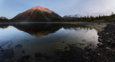 Осень в Якутии. На озере Кытын-Кюэль. Осень в Якутии. Не часто нас радовала хорошими рассветами. 5 дней дождей, которые иногда прекращались и давали вылезти из палатки и что-то сфотографировать. И вот наконец- то первый рассвет, когда не капает сверху и солнце стало пробиваться сквозь расходящиеся тучи. Рассвет мы встречали на небольшом озере Кытын-Кюэль. Якутия. Озеро Кытын-Кюэль. Хребет Черского. Улахан-Чистай. 26 августа 2023. |