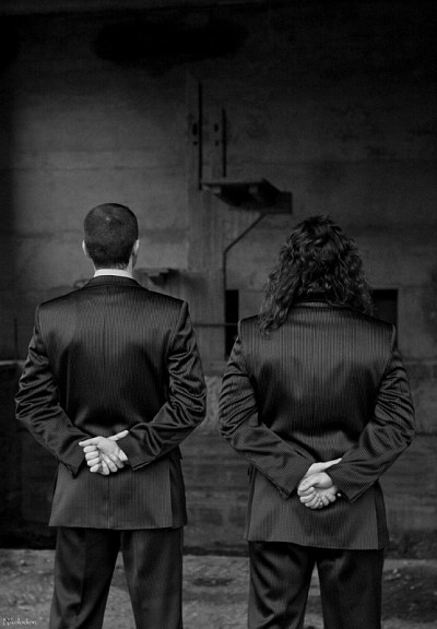 Чего-то не хватает, но забавно смотрится, что они руки одинаково сложили