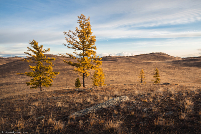 Характерный ландшафт степной зоны южной Сибири. Иркутская область, конец сентября