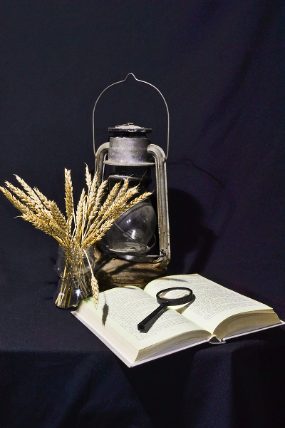 лампа, книга, колоски