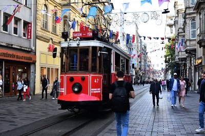 Утро на Истикляль Стамбул.Улица пешеходная. По ней ездит только знаменитый красный стамбульский трамвайчик, который вынужден постоянно притормаживать и сигналить пешеходам, чтобы они расступились и не попали под колеса. Но утром - немноголюдная. |