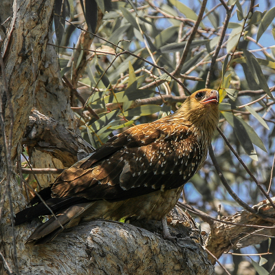 "Высоко сижу, далеко гляжу" Красный ястреб – тетеревятник (Erythrotriorchis radiatus) — вид хищных птиц из семейства ястребиных является эндемиком прибрежных и суб-прибрежных районов Австралии. Питается в основном птицами, редко охотится на млекопитающих, рептилий и крупных насекомых. Утром добывает корм путем кратковременной охоты со скрытых позиций на деревьях |