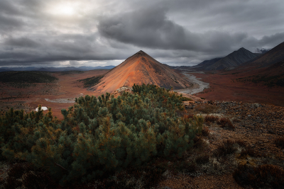 Якутский пасмурняк Не долго солнышко светило. Пока я поднимался на гору , соскальзывая с осыпающихся камней и цепляясь за стланик, тучи набежали на солнце, покрыв всё небо своим свинцовым покрывалом. Мне ничего не оставалось как в очередной раз запечатлеть нашу живописную Кысыл - Хая в мрачном обрамлении. Якутия. Хребет Черского. Улахан-Чистай. Кысыл-Хая. 25 августа 2023 |