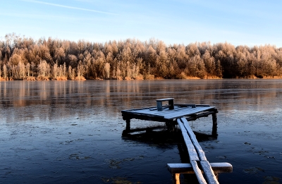 Ноябрь. Морозное утро. Иней на деревьях, а на озере первый ледок. Зима уже совсем рядом!