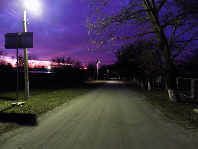 Закат,темнота,горят фонари