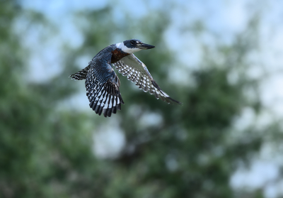 Ringed Kingfisher(m) Красногрудый пегий зимородок, или красногрудый ошейниковый зимородок (лат. Megaceryle torquata) — вид птиц семейства зимородков. Самый большой зимородок на американском континенте,достигает длины 40 см. |