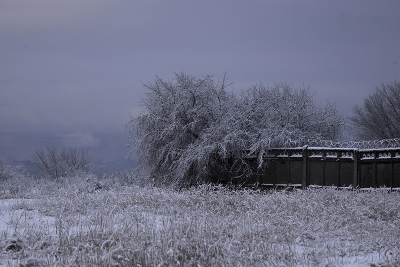 Александр Чумаков, " Лазурь " это цвет зимнего утра , солнце еще не встало , сумерки , забор лично для меня стал интересным именно в сочетании со снежным деревом и травой в синий мгле. |