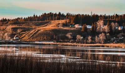 Холмы за озером.